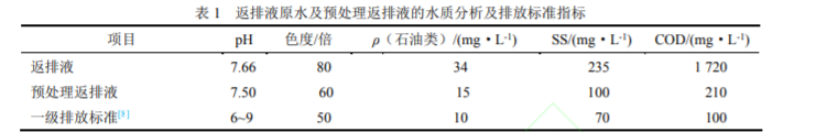 水平井分段壓裂是頁巖氣開發儲層改造的核心技術,單井作業用液量達(2~3)×104 m3,壓裂液中包含多種高分子聚合物添加劑。經過壓裂施工后的返排液是一種復雜的多相分散體系,高分子聚合物使得壓裂返排液呈穩定的膠體態,造成壓裂返排液處理難度大。當前,通過初步處理滿足重復利用的要求,已不再是壓裂返排液處理的唯一選擇,如何通過深度處理滿足達標排放的要求,對于促進頁巖氣綠色環保開發具有重要意義。