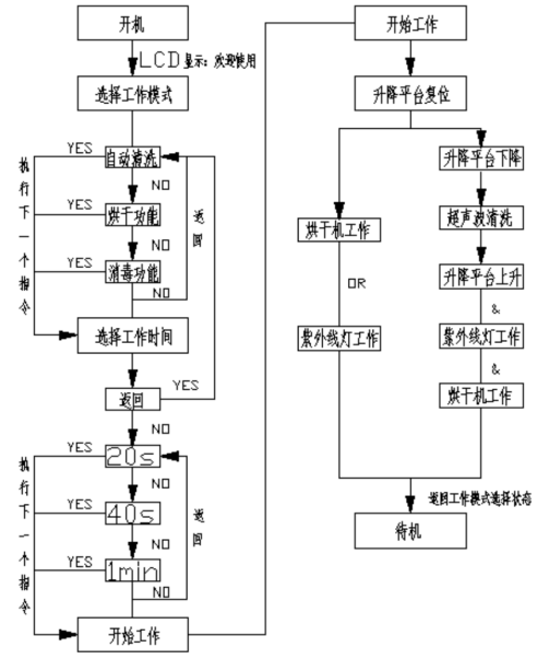 (2)自動(dòng)清洗。待清洗物品放在工作臺(tái)上,5秒后工作臺(tái)下降至超聲波清洗槽,進(jìn)行超聲波清洗。