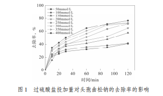 2.1 過硫酸鹽投加量對過硫酸鹽去除頭孢曲松鈉廢水的影響